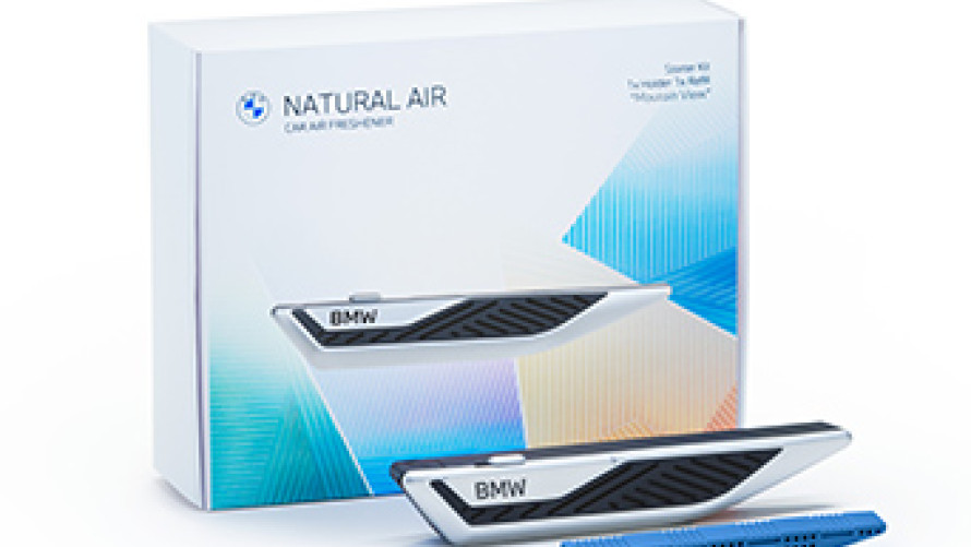 Systém štartovacej sady BMW Natural Air pozostáva z nastaviteľného držiaka vône a vymeniteľných vonných tyčiniek. Držiak vône s vôňou Mountain View je určený na pripevnenie k ventilačným mriežkam a je kompatibilný so všetkými modelmi BMW.